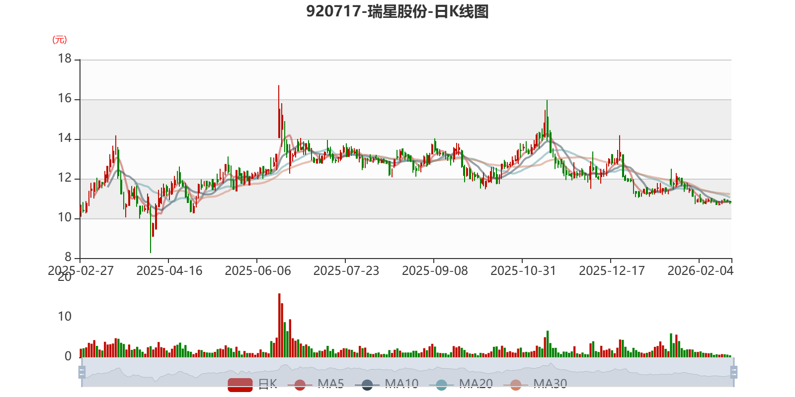中证智能财讯瑞星股份(920717)2月27日晚间披露2025年业绩快报,公司实现营业收入1.51亿元,同比下降14.13%;归母净利润310.16万元,同比下降80.64%;扣非净利润223.96万元,同比下降83.03%;基本每股收益0.03元,加权平均净资产收益率为0.55%。以2月27日收盘价计算,瑞星股份目前市盈率(TTM)约为399.7倍,市净率(LF)约2.2倍,市销率(TTM)约8.2倍。