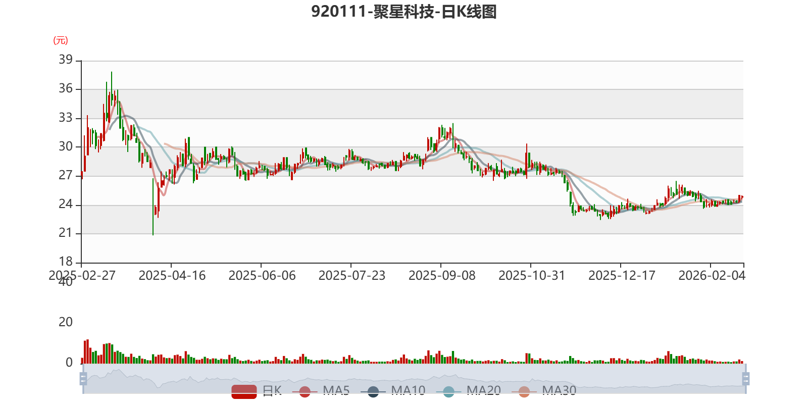中证智能财讯聚星科技(920111)2月27日晚间披露2025年业绩快报,公司实现营业收入12.35亿元,同比增长23.26%;归母净利润1.24亿元,同比增长6.77%;扣非净利润1.15亿元,同比增长5.74%;基本每股收益0.8元,加权平均净资产收益率为13.89%。以2月27日收盘价计算,聚星科技目前市盈率(TTM)约为31.16倍,市净率(LF)约4.11倍,市销率(TTM)约3.13倍。