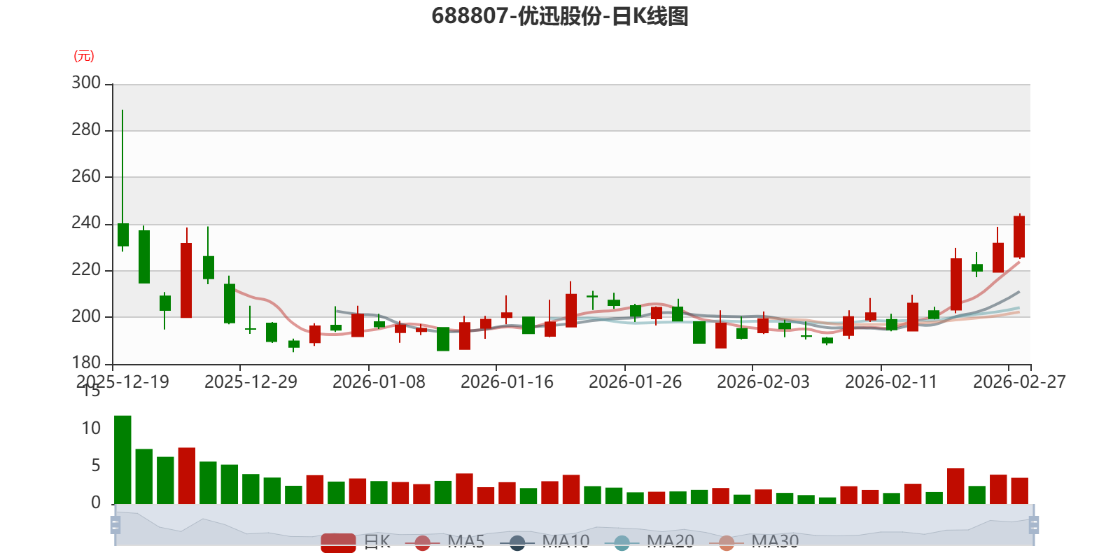 中证智能财讯优迅股份(688807)2月27日晚间披露2025年业绩快报,公司实现营业收入4.86亿元,同比增长18.41%;归母净利润8812.61万元,同比增长13.18%;扣非净利润7414.61万元,同比增长8.13%;基本每股收益1.47元,加权平均净资产收益率为11.27%。以2月27日收盘价计算,优迅股份目前市盈率(TTM)约为220.7倍,市净率(LF)约11.18倍,市销率(TTM)约41.75倍。