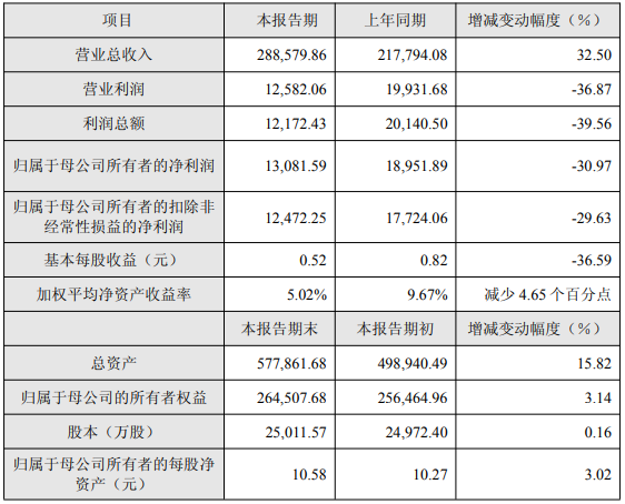 2025年末,公司预计总资产577,861.68万元,同比增长15.82%;预计归属于母公司的所有者权益264,507.68万元,同比增长3.14%;预计归属于母公司所有者的每股净资产10.58元,同比增长3.02%。