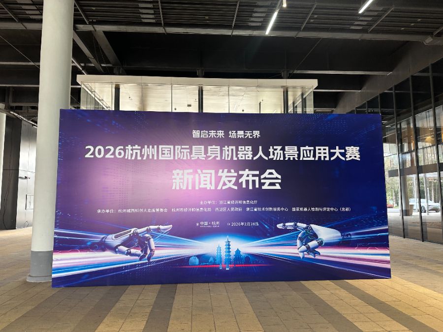 (2026杭州国际具身机器人场景应用大赛新闻发布会现场,柳宁馨/摄)