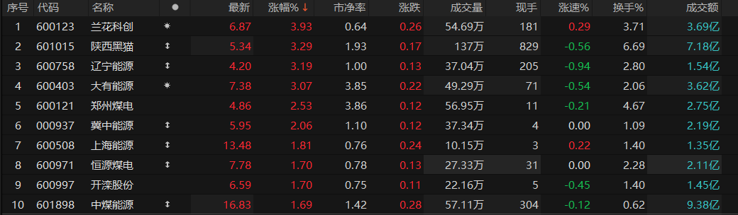 煤炭板块持续拉升翻红,兰花科创、陕西黑猫、辽宁能源、大有能源涨超3%。