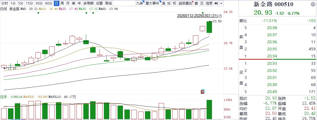 高位连拉涨停后,新金路(000510)日前发布股价异动公告。
