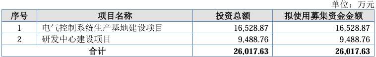 本次北交所上市,嘉晨智能拟公开发行股票数量不超过2070万股(在未考虑超额配售选择权的情况下),拟募集资金2.6亿元,用于电气控制系统生产基地建设项目、研发中心建设项目。