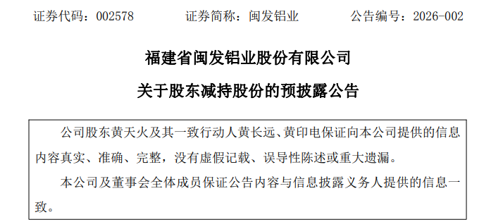 业绩预亏公告发布一个多月后,3月3日晚间,闽发铝业(002578)披露了股东减持计划。