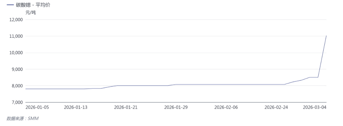 SMM数据显示,3月4日,国内碳酸锶单日跳涨2525元/吨至11025元/吨,单日涨幅达到29.71%,创出年内最大单日涨幅。