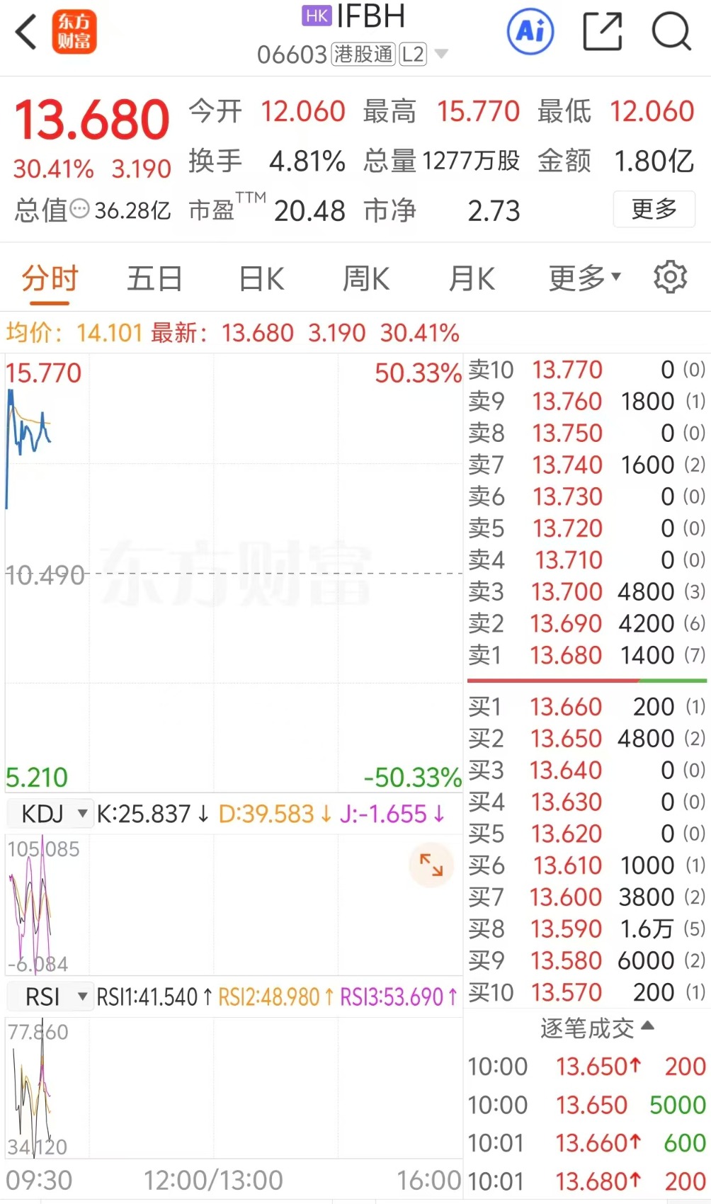 上证报中国证券网讯3月5日,IF椰子水母公司IFBH盘中一度涨超50%,截至10时01分,该股报13.68港元/股,涨幅收窄至30.41%。