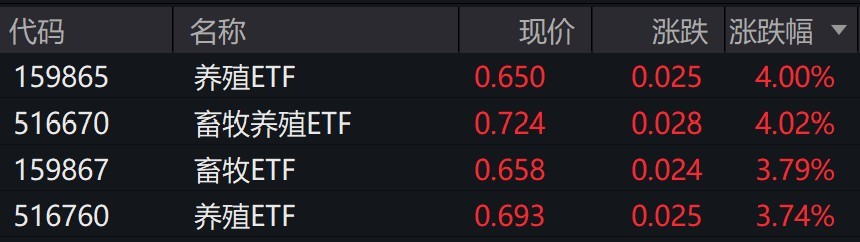 受盘面影响,养殖相关ETF涨约4%。