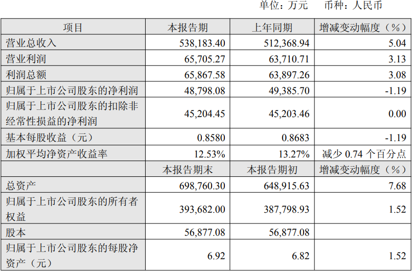 3月6日,广州酒家(603043)发布公告,2025年度业绩快报显示,公司实现营业总收入53.82亿元,同比增长5.04%;归母净利润为4.88亿元,同比下降1.19%。