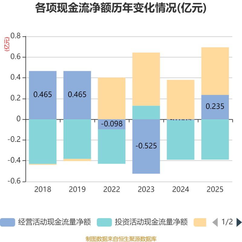 截至2025年,公司经营活动现金流净额为2353.8万元,同比增加2439.31万元;筹资活动现金流净额4592.27万元,同比增加790.55万元;投资活动现金流净额-3893.11万元,上年同期为-3814.9万元。