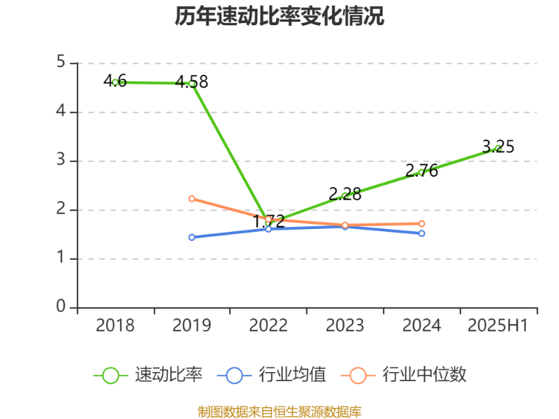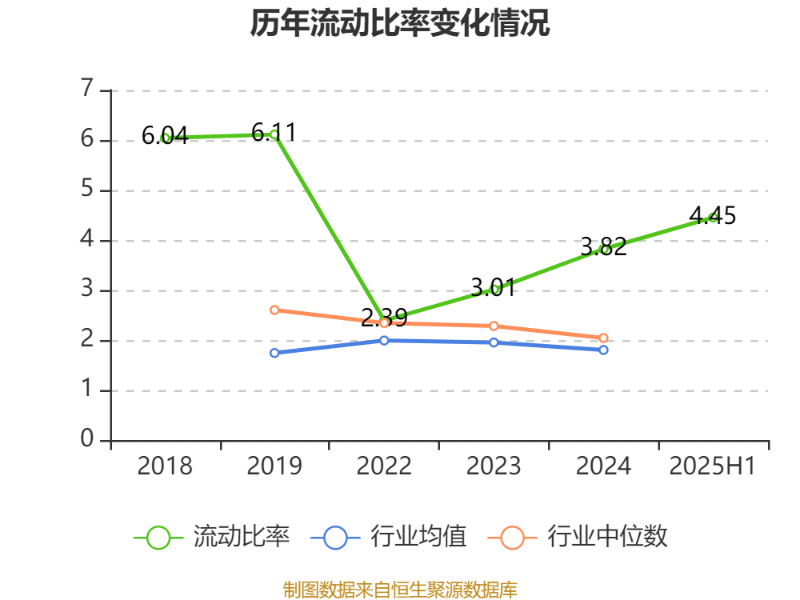 没有最新流动比率和速动比率数据2025年上半年,公司流动比率为4.45,速动比率为3.25。