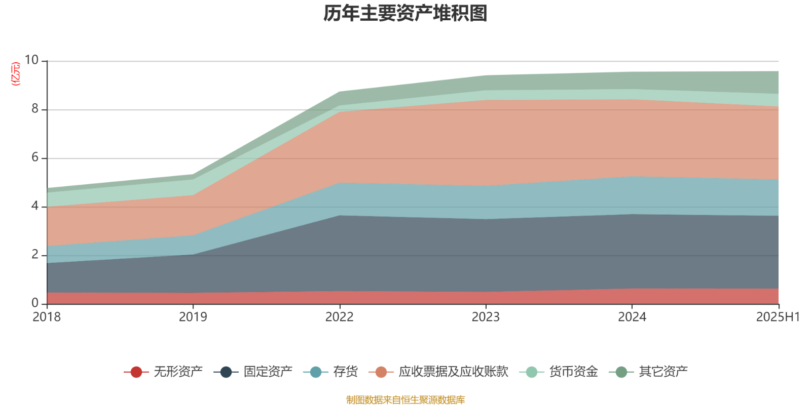 资产重大变化方面,截至2025年上半年,公司应收票据及应收账款较上年末减少5.3%,占公司总资产比重下降1.84个百分点;在建工程合计较上年末增加176.61%,占公司总资产比重上升1.53个百分点;货币资金较上年末增加23.52%,占公司总资产比重上升1.03个百分点;固定资产较上年末减少2.03%,占公司总资产比重下降0.73个百分点。