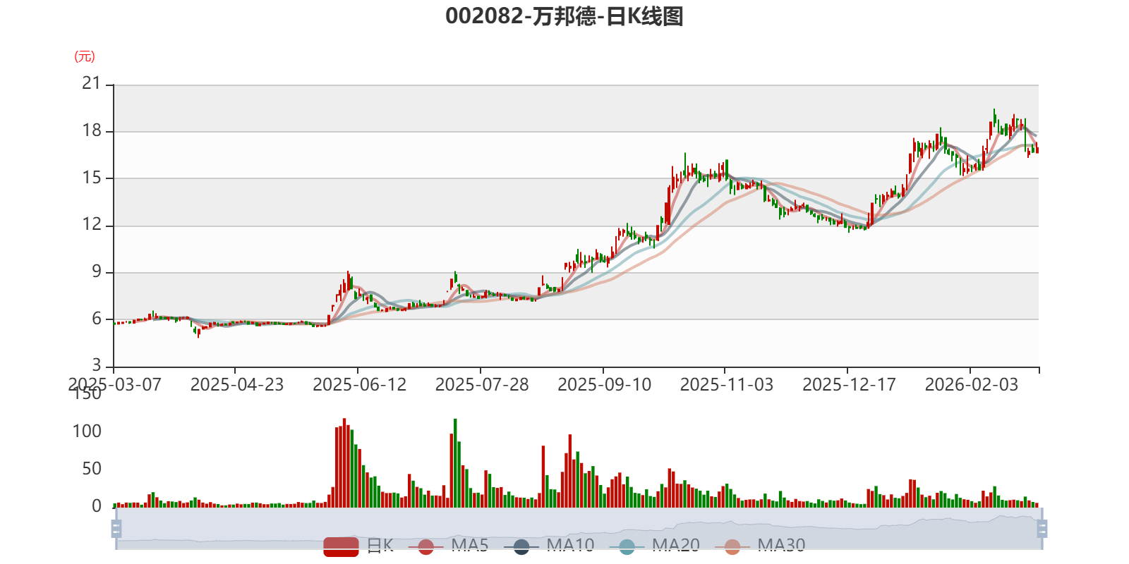 中证智能财讯万邦德(002082)3月6日晚间披露业绩预告,预计2026年一季度归母净利润1.65亿元,同比增长985.4%;扣非净利润预计1.64亿元,上年同期亏损790.53万元;基本每股收益0.2697元/股。以最新收盘价计算,市净率(LF)约3.88倍,市销率(TTM)约7.48倍。