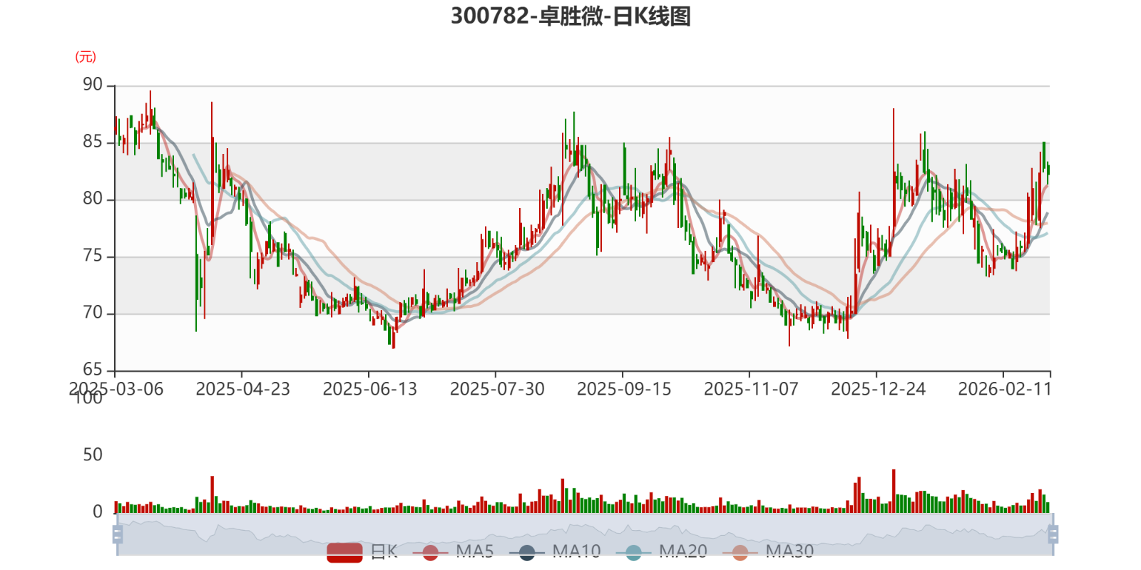 中证智能财讯卓胜微(300782)3月6日晚间披露2025年业绩快报,公司实现营业收入37.26亿元,同比下降16.96%;归母净利润亏损2.68亿元,上年同期盈利4.02亿元;扣非净利润亏损3.18亿元,上年同期盈利3.64亿元;基本每股收益-0.5012元,加权平均净资产收益率为-2.67%。以最新收盘价计算,市净率(LF)约4.39倍,市销率(TTM)约11.31倍。