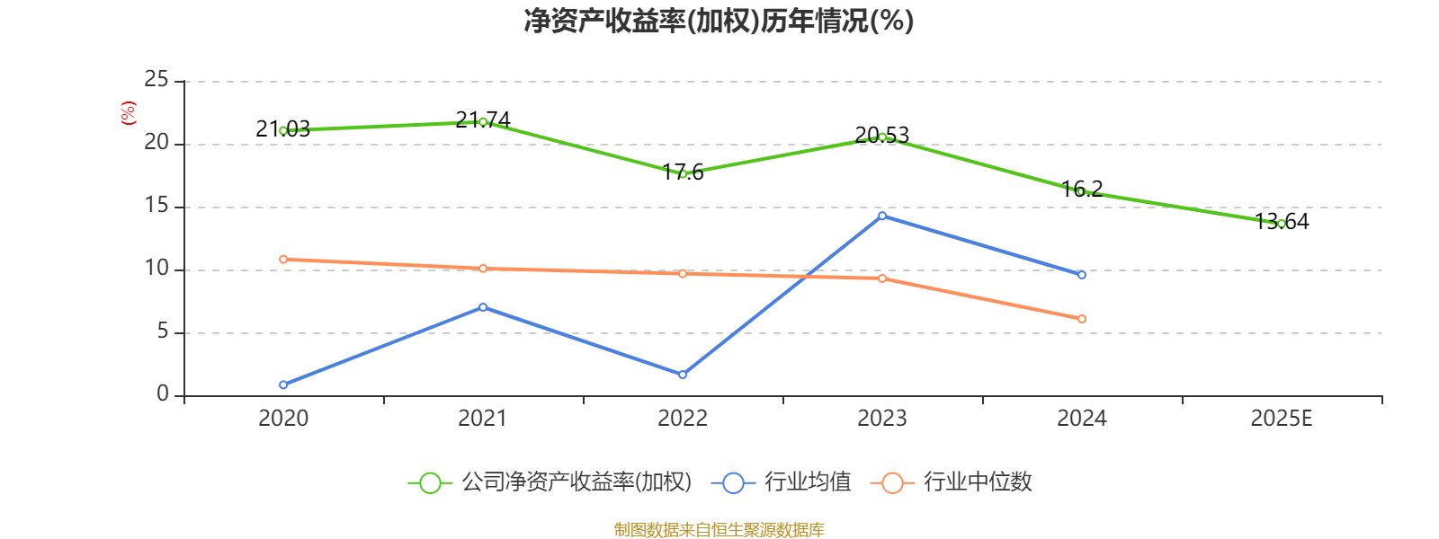 数据显示,2025年公司加权平均净资产收益率为13.64%,较上年同期下降2.56个百分点。
