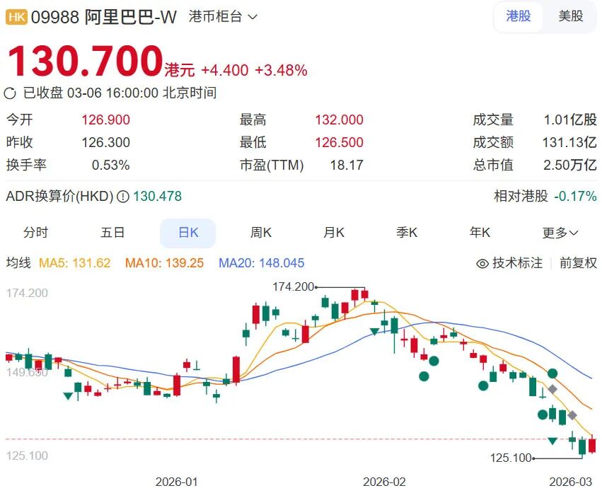 吴泳铭出面后,阿里港股在6日刚赶上科技股反弹,大涨3.48%。同期,千问推出“妇女节活动”,再次请客,以提升活跃度。