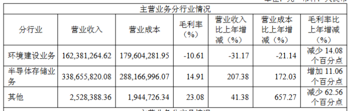 诚邦股份2025 年以“半导体存储+生态环境建设”双主业发展,采用生态环境建设业务适度收缩、半导体存储业务适度扩张的战略。其中:半导体存储业务收入比上年增加 22,989.67 万元,增长 207.88%;生态环境建设板块新增订单减少,营业收入比上年减少 7,285.23 万元,下降 30.88%。