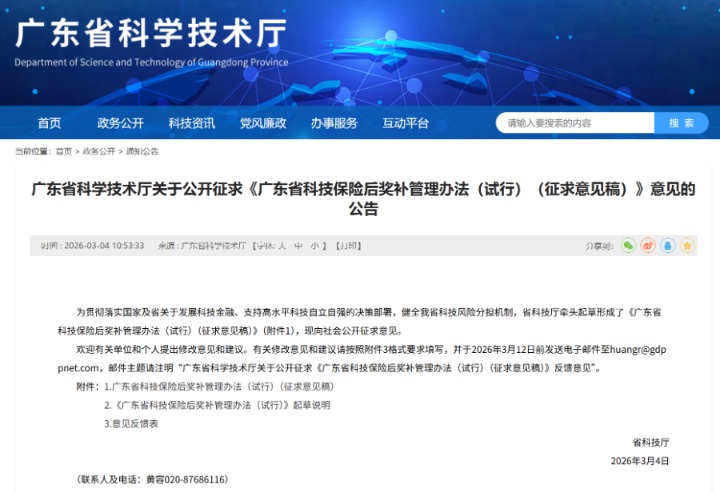据悉,《征求意见稿》出台前,广东省科学技术厅指导南方财经全媒体集团、广东省生产力促进中心、中国人保财险广东省分公司等,走访省内多个地市数十家战略性新兴产业科技企业、科创平台、地市科技局及省内主要保险机构,深度调研科技保险在推广落地过程中的难点堵点及市场建议,相关调研成果为此次科技保险后奖补管理办法编制提供了调研基础。