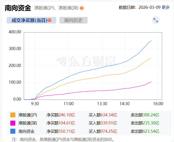 截至目前,南向资金净买入额达350亿港元。