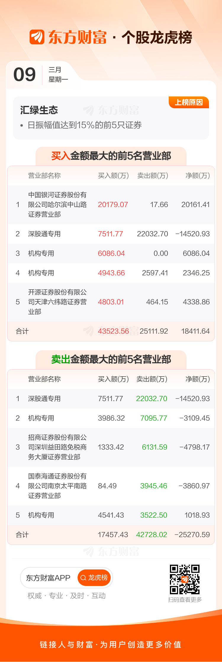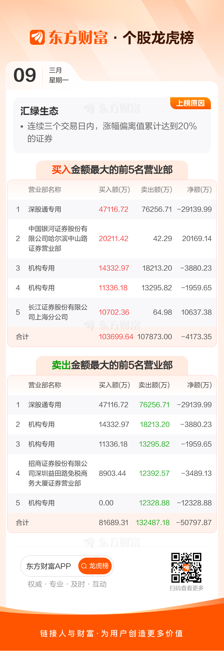 汇绿生态(001267)龙虎榜数据(03-09)