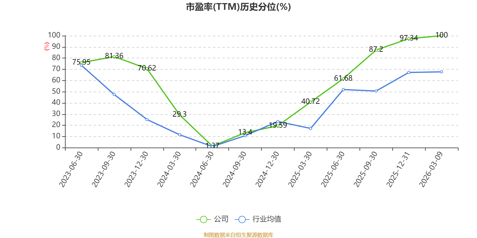 市盈率、市净率为负时,不显示当期分位数,会导致折线图中断。