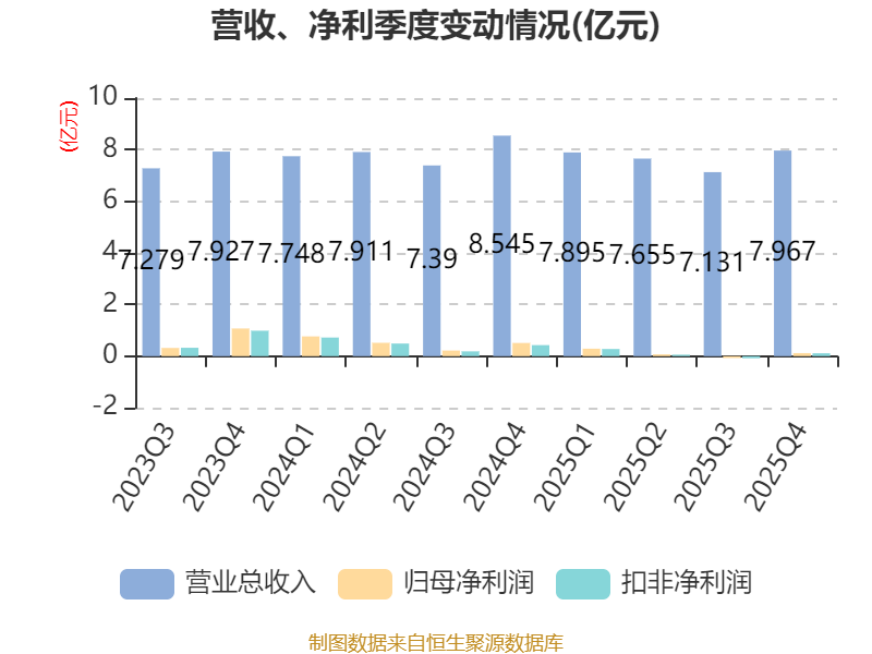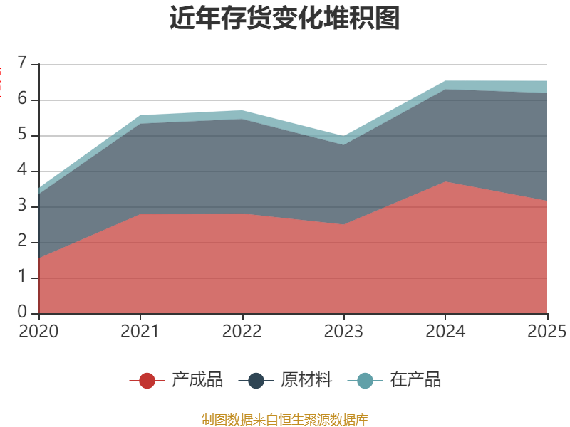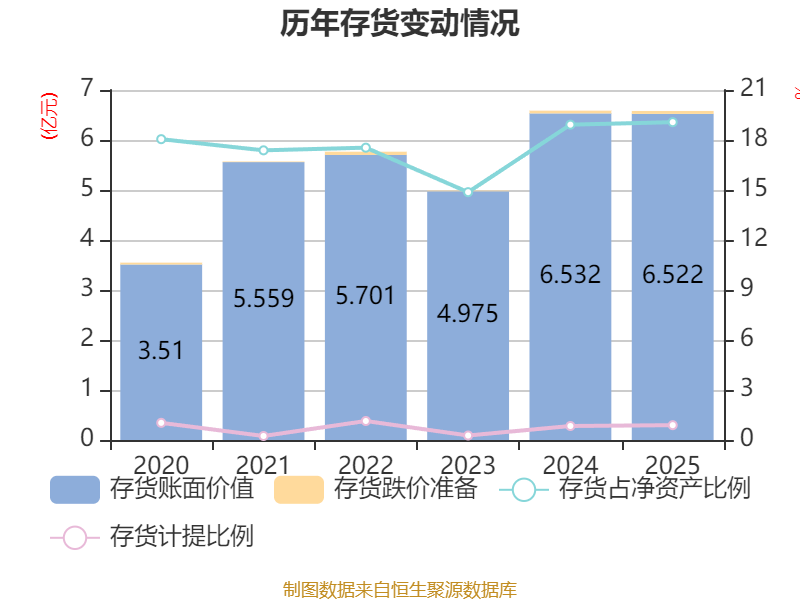 从存货变动来看,截至2025年末,公司存货账面价值为6.52亿元,占净资产的19.07%,较上年末减少93.19万元。其中,存货跌价准备为588.51万元,计提比例为0.89%。