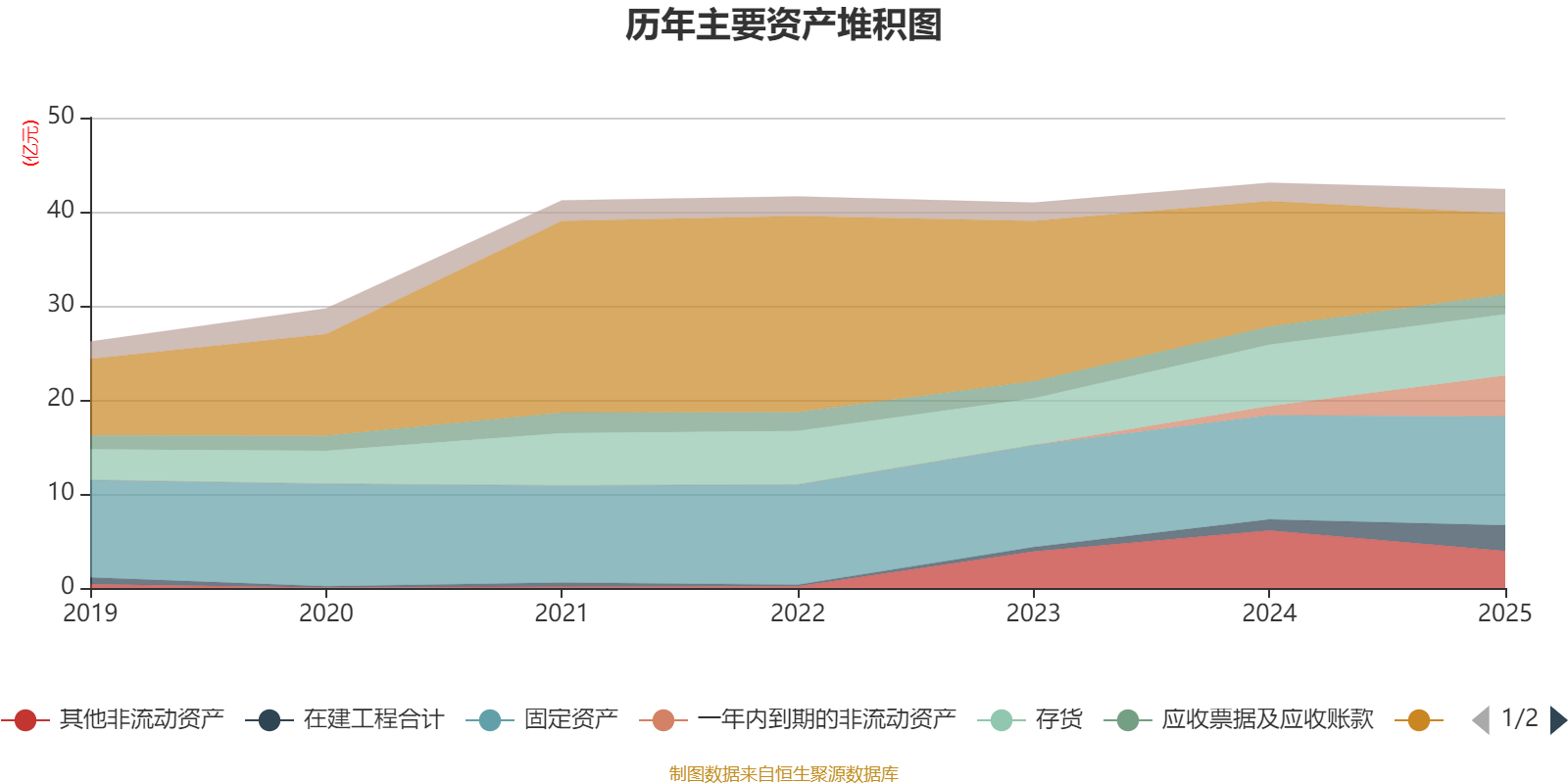 资产重大变化方面,截至2025年末,公司货币资金较上年末减少35.43%,占公司总资产比重下降10.64个百分点;一年内到期的非流动资产较上年末增加351.85%,占公司总资产比重上升8.01个百分点;其他非流动资产较上年末减少35.72%,占公司总资产比重下降4.92个百分点;在建工程合计较上年末增加132.36%,占公司总资产比重上升3.71个百分点。