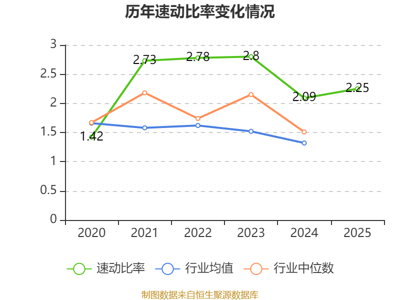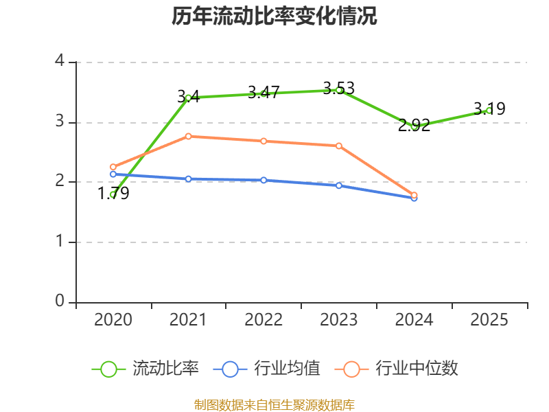 2025年,公司流动比率为3.19,速动比率为2.25。