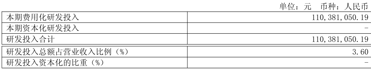 2025年全年,公司研发投入金额为1.1亿元,同比增长7.06%;研发投入占营业收入比例为3.6%,相比上年同期上升0.34个百分点。此外,公司全年研发投入资本化率为0%。