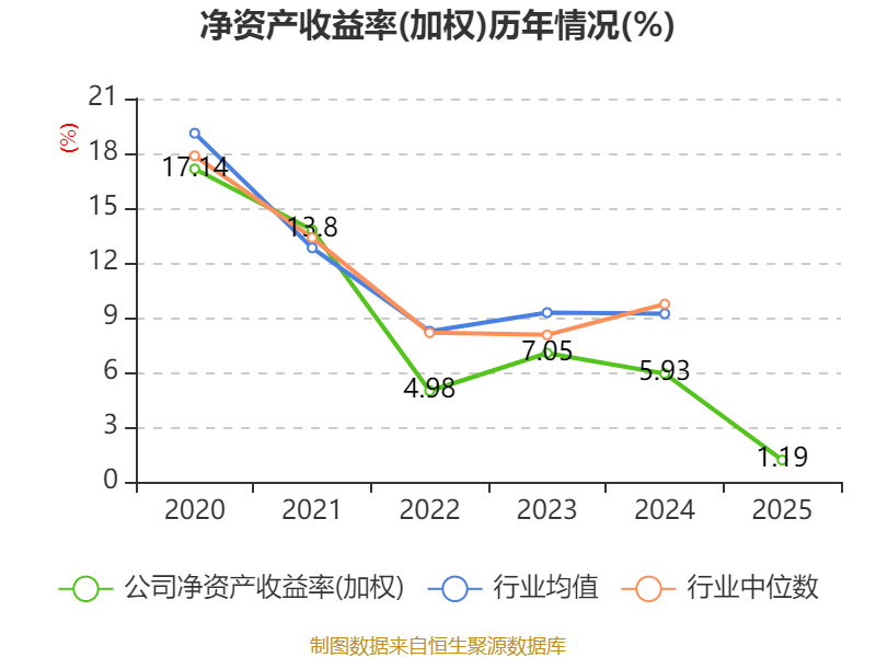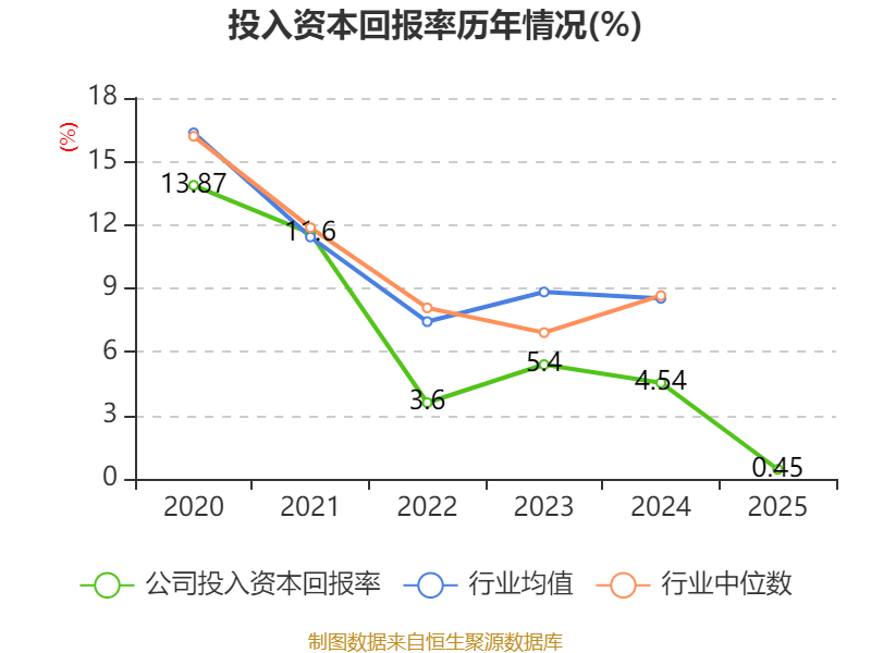 数据显示,2025年公司加权平均净资产收益率为1.19%,较上年同期下降4.74个百分点。公司2025年投入资本回报率为0.45%,较上年同期下降4.09个百分点。