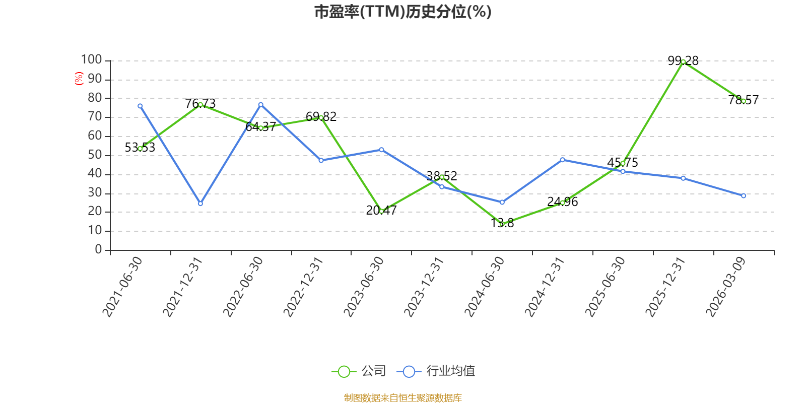 市盈率、市净率为负时,不显示当期分位数,会导致折线图中断。