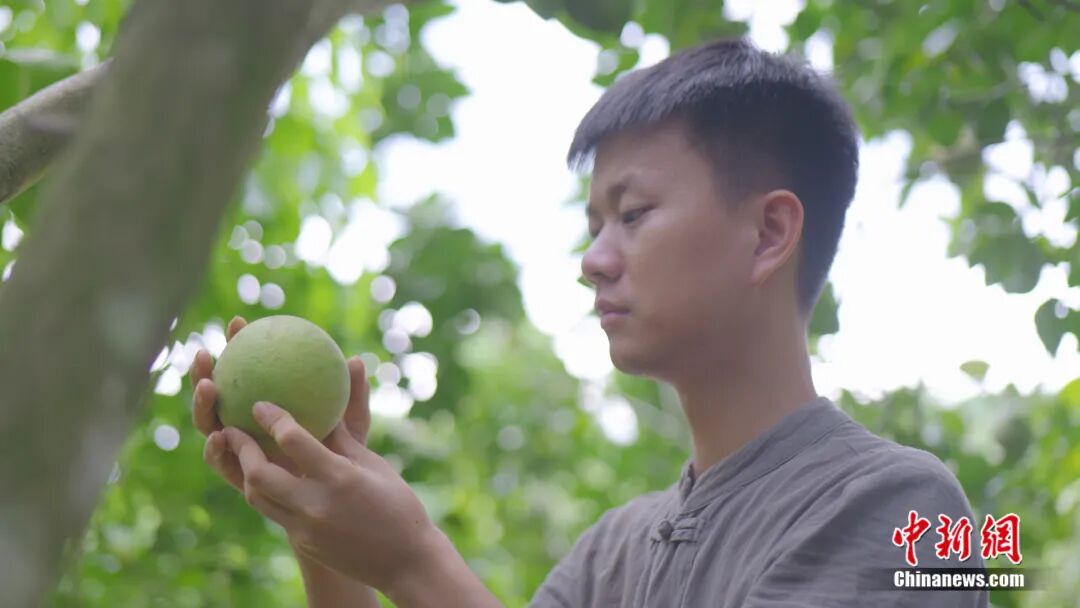 图为全国人大代表、广东茂名化州市培林橘红种植专业合作社社长廖志略采摘化橘红果。化州市化橘红专班供图