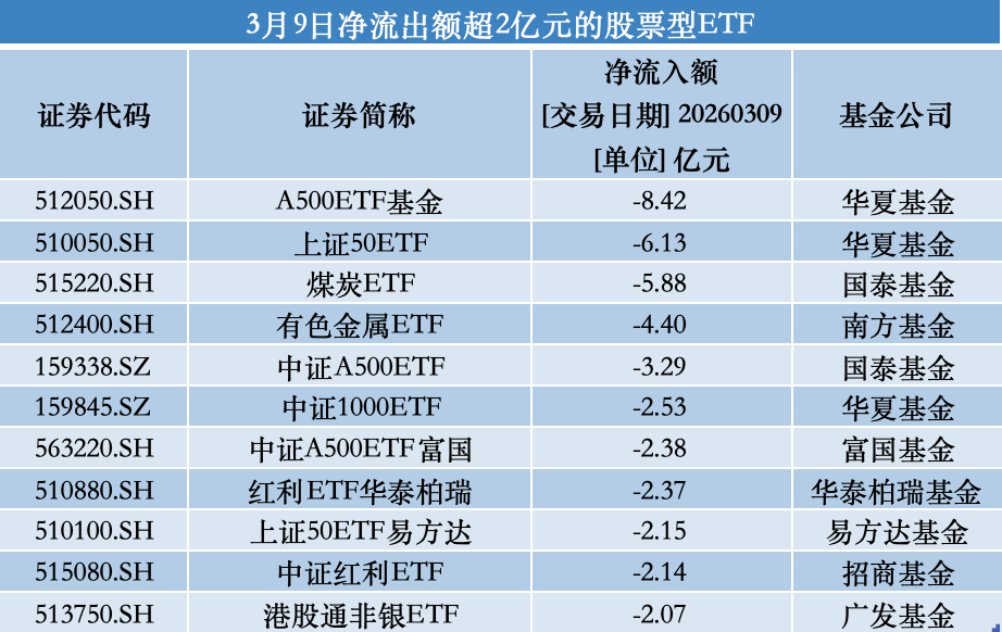 此外,国泰煤炭ETF、南方有色金属ETF、华泰柏瑞红利ETF、广发港股通非银ETF单日净流出额依次为5.88亿元、4.40亿元、2.37亿元、2.07亿元。