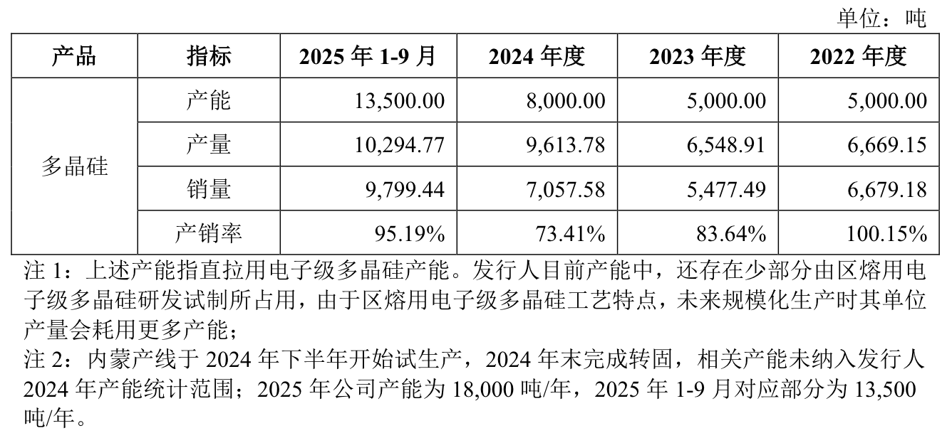 面对大量存货堆积入库,存货跌价准备也是同步攀升。2022年至2025年前三季度,公司计提的存货跌价准备余额分别为300.08万元、521.95万元、5315.38万元和9591.75万元,存货跌价准备占存货余额比例分别为3.61%、2.79%、16.94%和20.49%。。而之所以2024年占比数据出现陡增,还在于公司内蒙产线是2024年下半年开始试生产,其产能及良率均处于爬坡阶段,产出了较多的电子级多晶硅副产品。