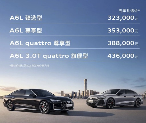 3月10日,奥迪宣布新款奥迪A6L正式开启预售,包含四款车型,预售价区间32.3万-43.6万元。