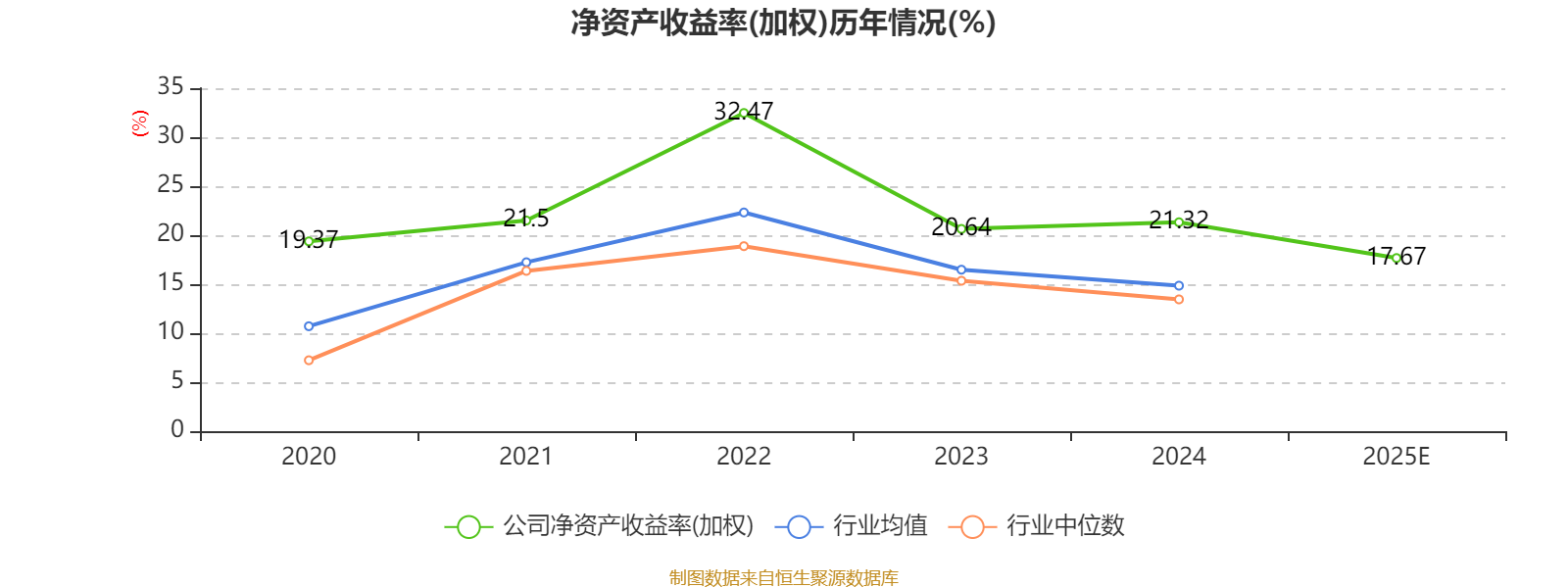 数据显示,2025年公司加权平均净资产收益率为17.67%,较上年同期下降3.65个百分点。