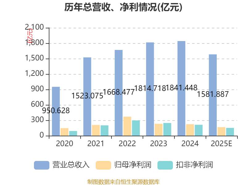 中证智能财讯陕西煤业(601225)3月10日晚间披露2025年业绩快报,公司实现营业收入1581.89亿元,同比下降14.1%;归母净利润165.48亿元,同比下降25.99%;扣非净利润151.14亿元,同比下降28.58%;基本每股收益1.71元,加权平均净资产收益率为17.67%。以3月10日收盘价计算,陕西煤业目前市盈率(TTM)约为14.69倍,市净率(LF)约2.57倍,市销率(TTM)约1.38倍。