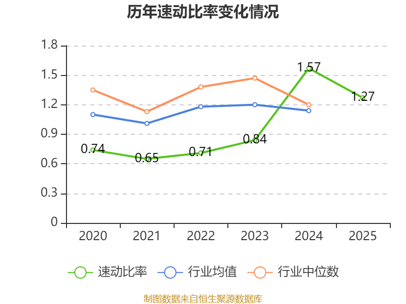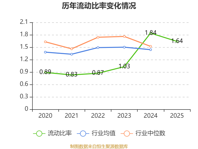 2025年,公司流动比率为1.64,速动比率为1.27。