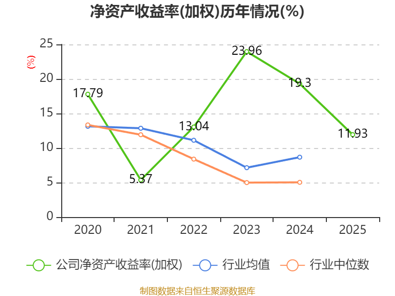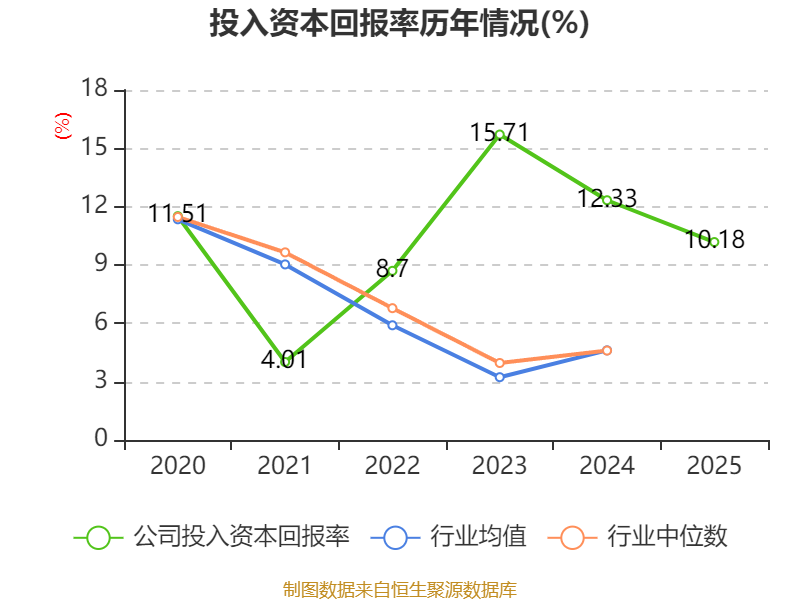 数据显示,2025年公司加权平均净资产收益率为11.93%,较上年同期下降7.37个百分点。公司2025年投入资本回报率为10.18%,较上年同期下降2.15个百分点。
