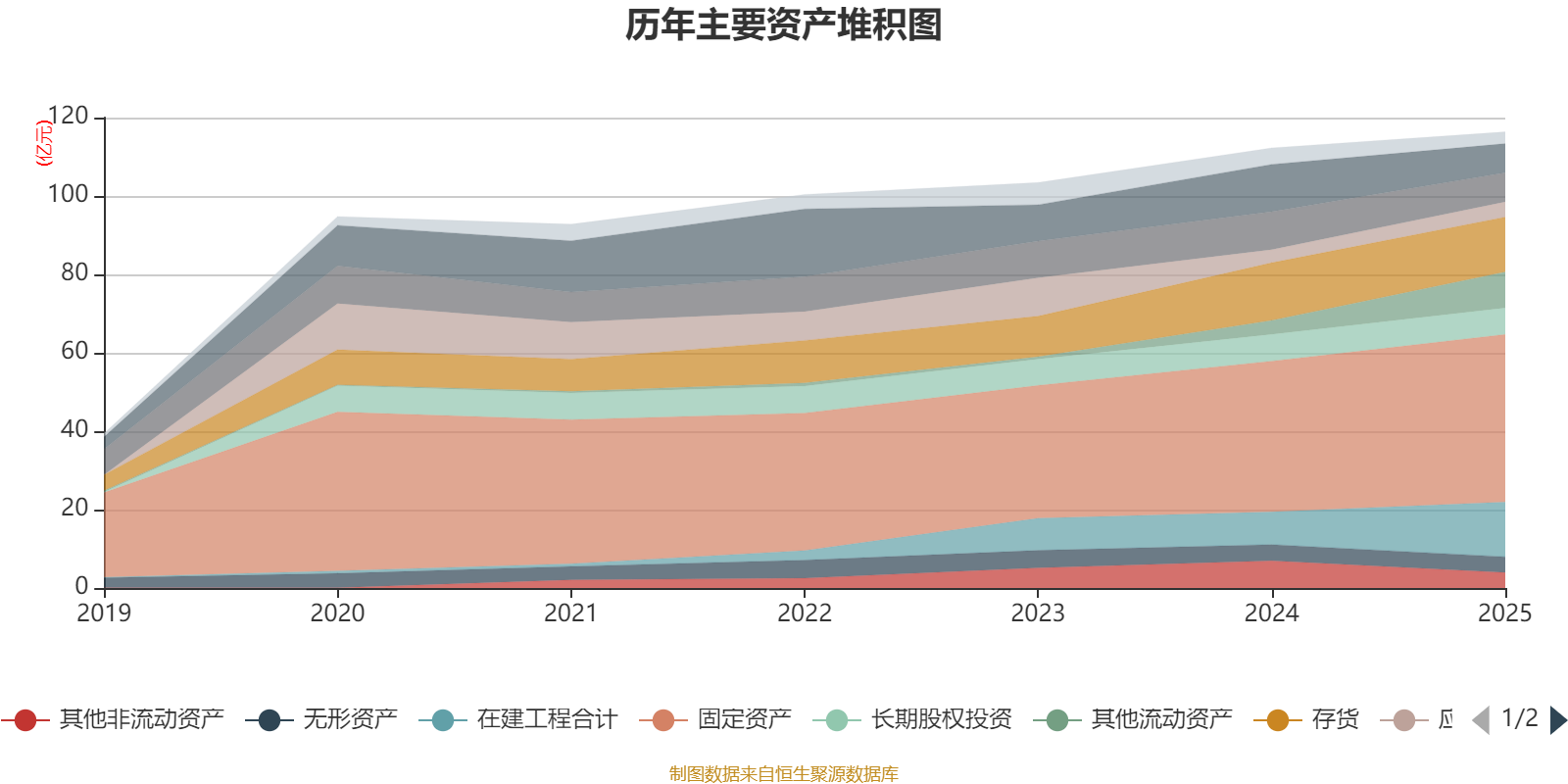 资产重大变化方面,截至2025年末,公司其他流动资产较上年末增加158.23%,占公司总资产比重上升4.75个百分点;在建工程合计较上年末增加67.72%,占公司总资产比重上升4.59个百分点;货币资金较上年末减少38.56%,占公司总资产比重下降4.37个百分点;其他非流动资产较上年末减少43.44%,占公司总资产比重下降2.8个百分点。