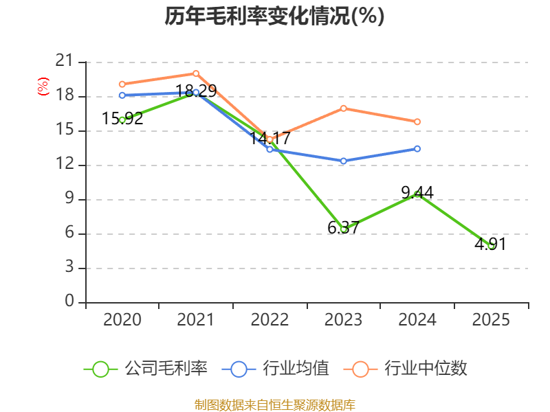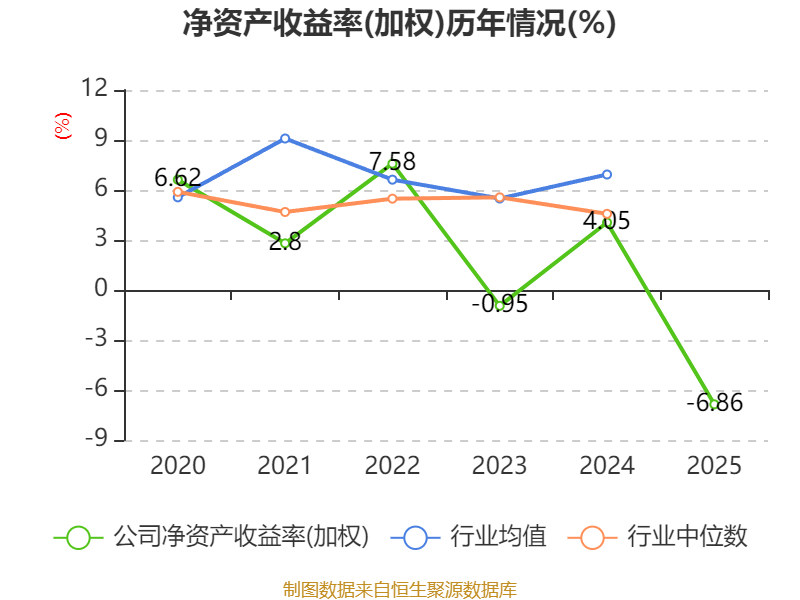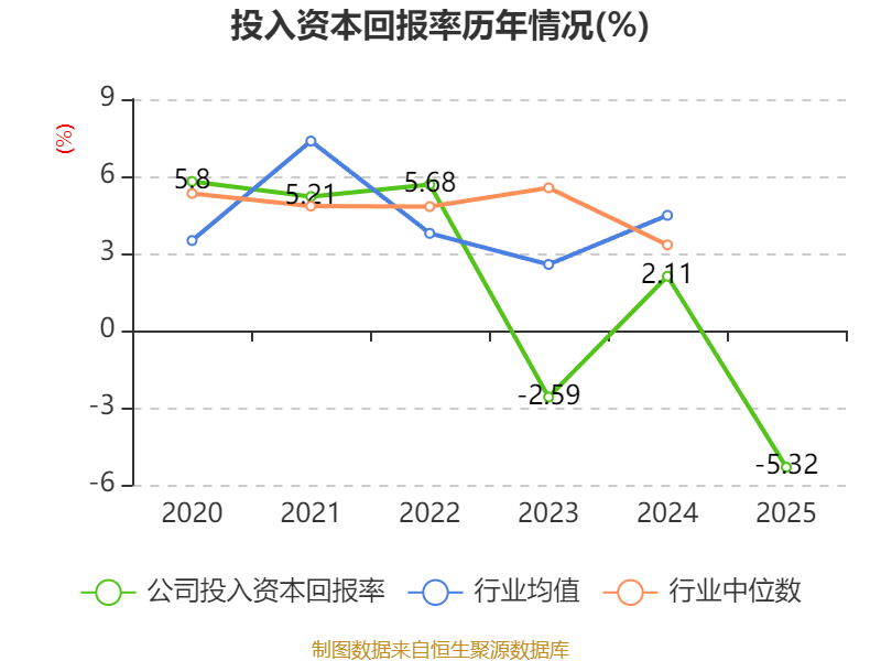 数据显示,2025年公司加权平均净资产收益率为-6.86%,较上年同期下降10.91个百分点。公司2025年投入资本回报率为-5.32%,较上年同期下降7.43个百分点。