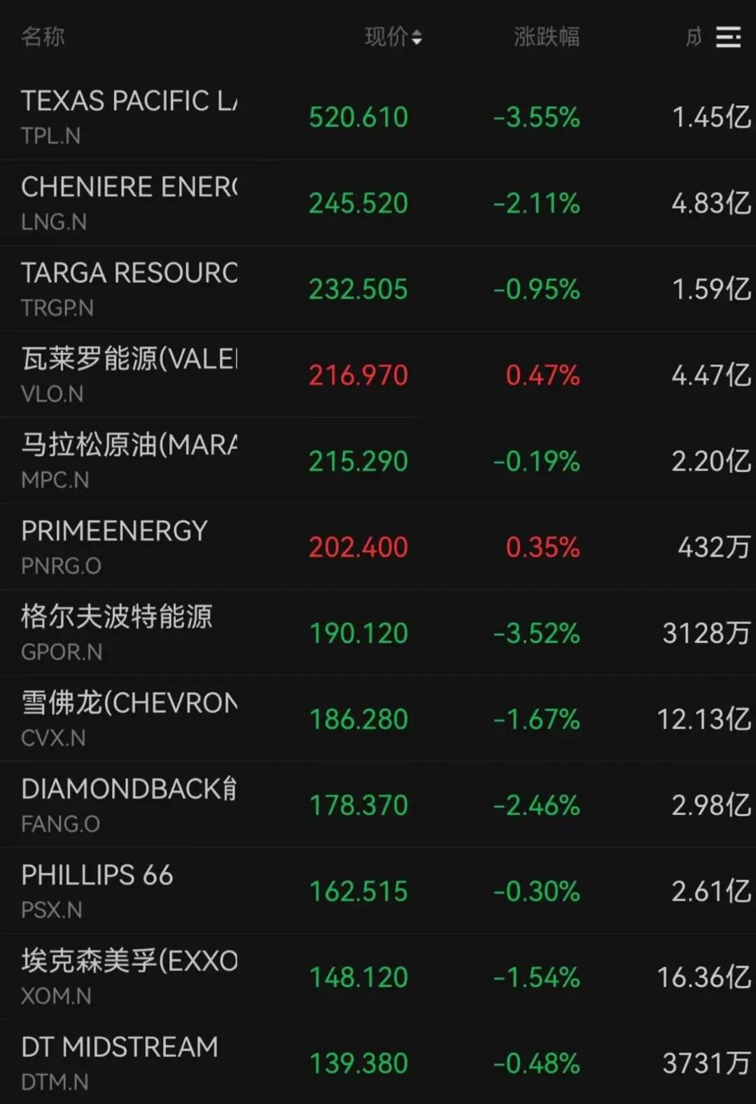 国际油价大幅震荡,石油股回调。TEXAS PACIFIC下跌3.55%,格尔夫波特能源下跌3.52%,DIAMONDBACK能源下跌2.46%。