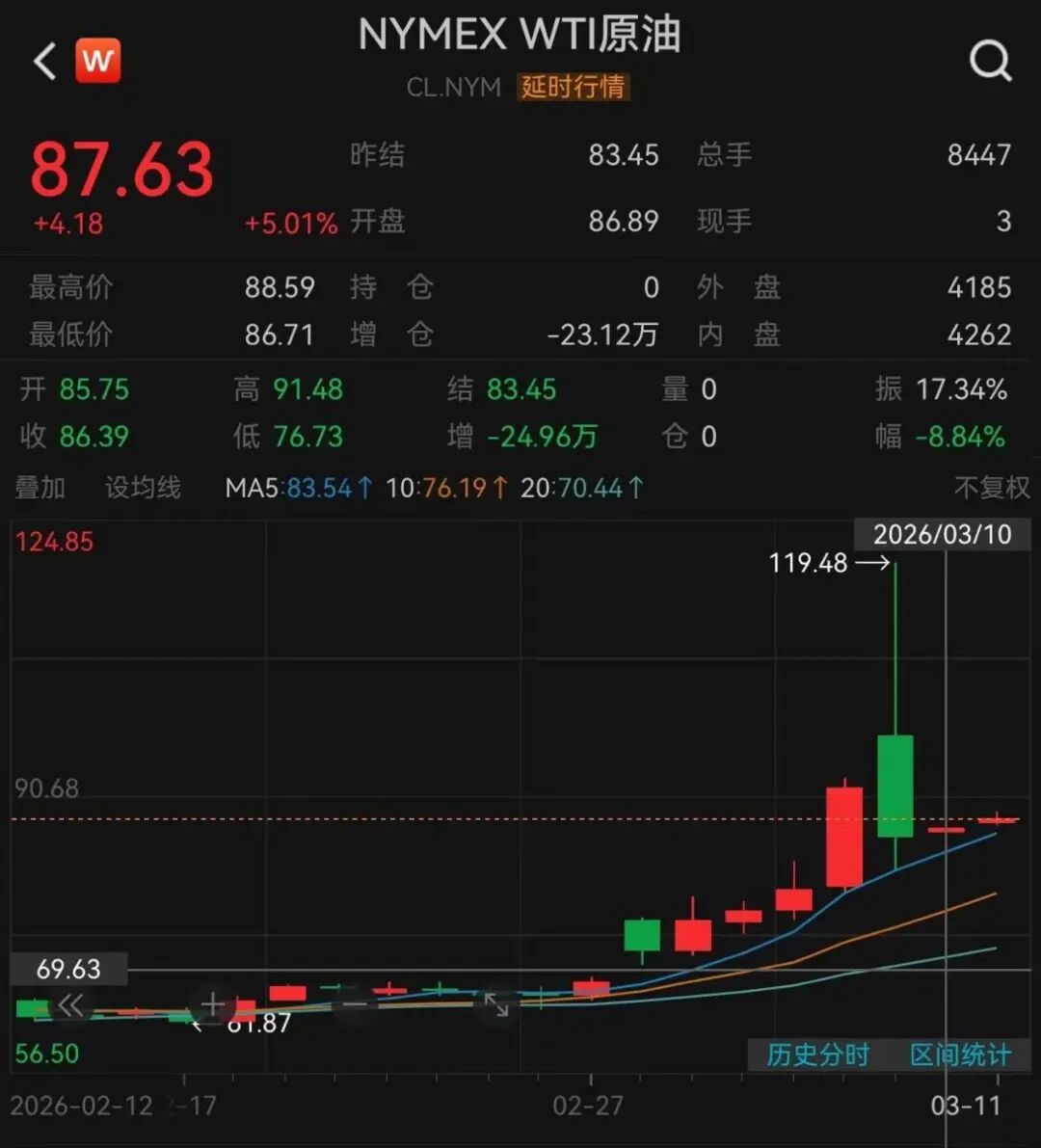 商品价格方面,3月10日,NYMEX WTI原油期货当日收跌近9%。3月11日,亚太市场开盘后,NYMEX WTI原油期货反弹。