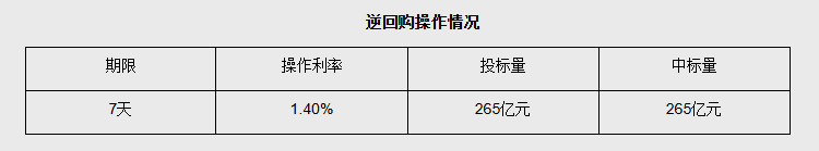 【大河财立方消息】2026年3月11日,中国人民银行以固定利率、数量招标方式开展了265亿元7天期逆回购操作。具体情况如下: