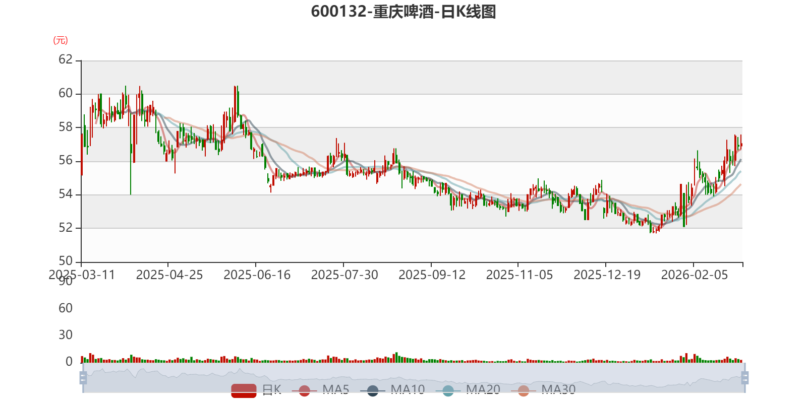 年报显示,2025年末的公司十大流通股东中,持股最多的为嘉士伯啤酒厂香港有限公司,占比42.54%。在具体持股比例上,鹏华中证酒交易型开放式指数证券投资基金、中信建投证券股份有限公司、中证500交易型开放式指数证券投资基金、中证主要消费交易型开放式指数证券投资基金持股有所上升,香港中央结算有限公司持股有所下降。