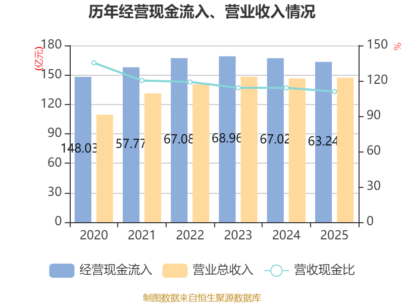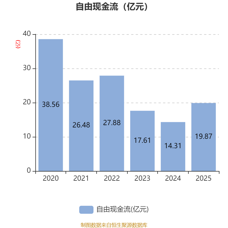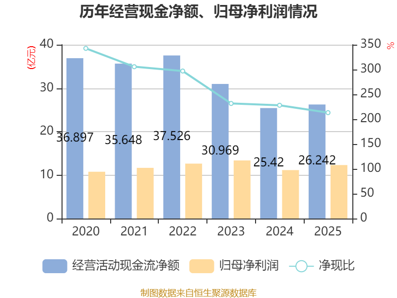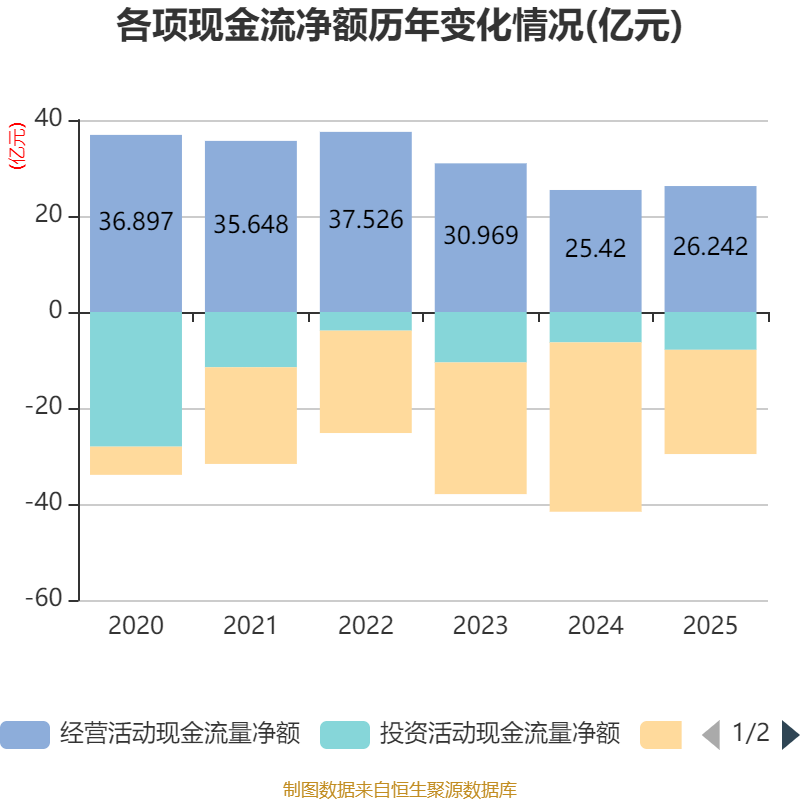 截至2025年,公司经营活动现金流净额为26.24亿元,同比增长3.23%;筹资活动现金流净额-21.72亿元,同比增加13.56亿元;投资活动现金流净额-7.87亿元,上年同期为-6.33亿元。