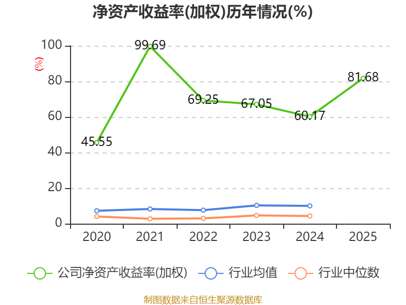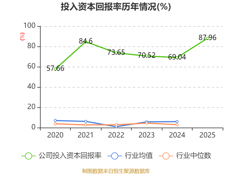 数据显示,2025年公司加权平均净资产收益率为81.68%,较上年同期上升21.51个百分点。公司2025年投入资本回报率为87.96%,较上年同期上升18.92个百分点。