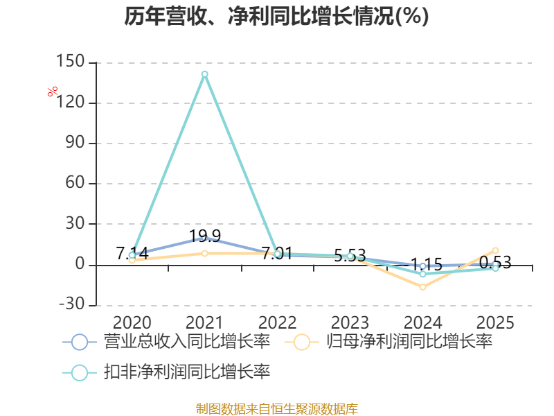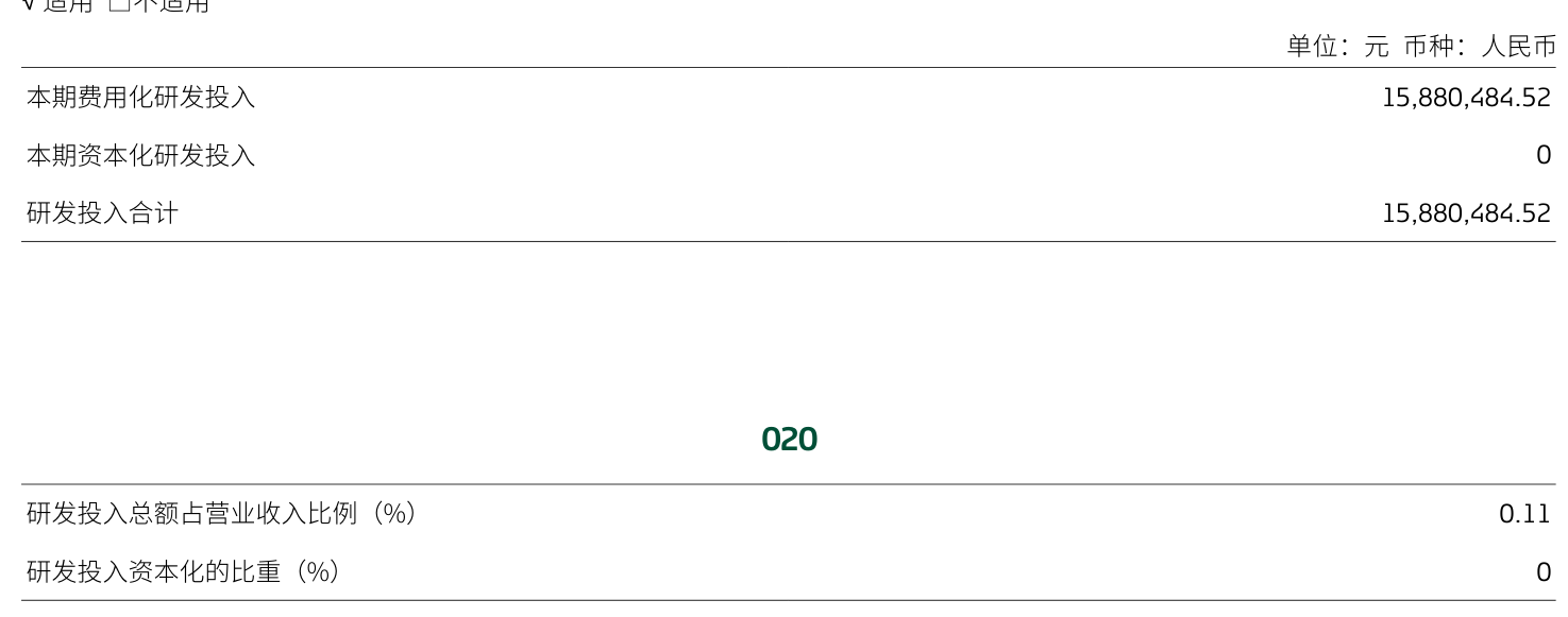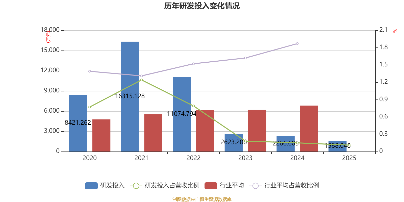 2025年全年,公司研发投入金额为1588.05万元,同比下降29.94%;研发投入占营业收入比例为0.11%,相比上年同期下降0.04个百分点。此外,公司全年研发投入资本化率为0%。
