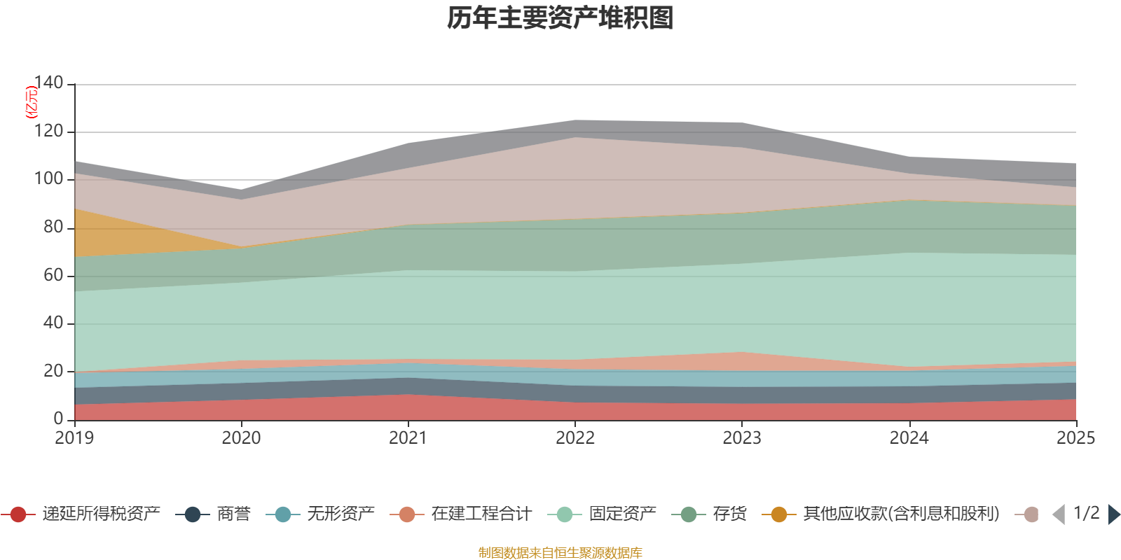 资产重大变化方面,截至2025年末,公司交易性金融资产合计占公司总资产的3.56%,上年末为0;货币资金较上年末减少30.38%,占公司总资产比重下降2.82个百分点;固定资产较上年末减少6.46%,占公司总资产比重下降1.75个百分点;递延所得税资产较上年末增加21.81%,占公司总资产比重上升1.6个百分点。