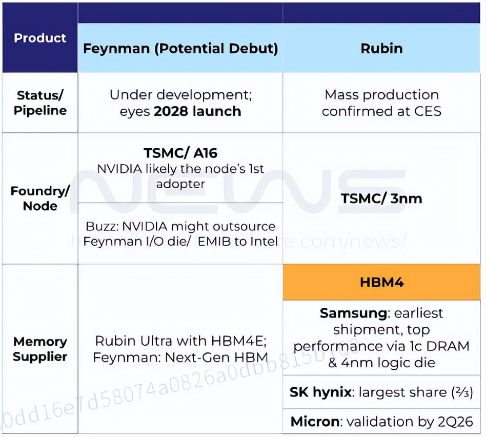 2) Feynman架构采用台积电最新A16工艺。